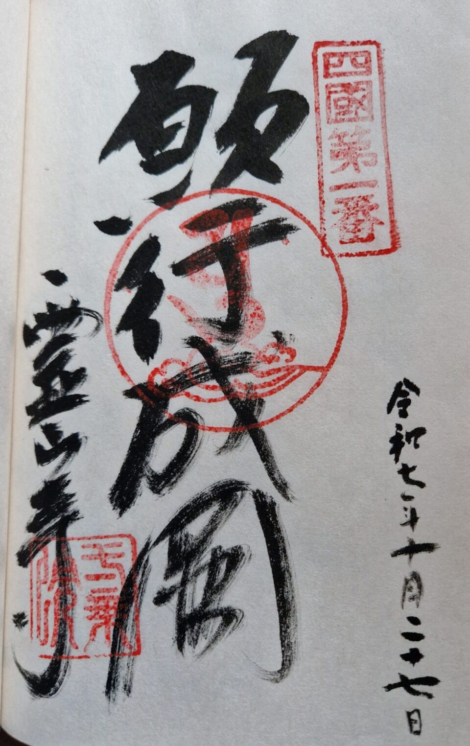 Links der Stempel von Tempel 1 und rechts der abschliessende Stempel, wiederum vom Tempel 1. Während der letzte Abschnitt der Shikoku Pilgerreise dem Nirvana gewidmet ist, landet man beim Abschluss wieder bei Tempel 1, dem Erwachen.
