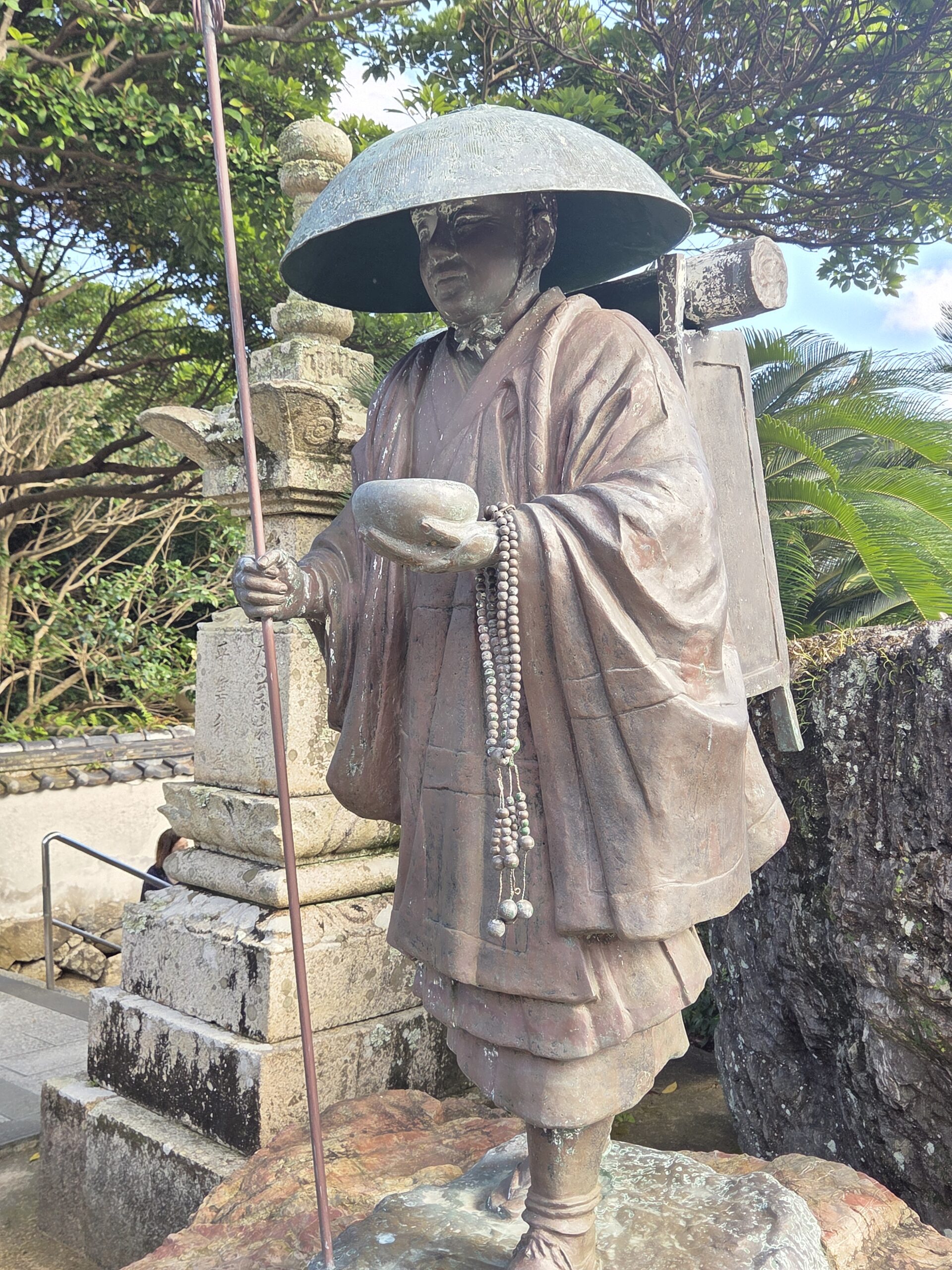 Kūkai, weit bekan­nter unter dem Ehren­ti­tel Kōbō Daishi (774–835), war ein japanis­ch­er Mönch, Gelehrter, Dichter und der Grün­der der Shin­gon-Schule des eso­ter­ischen Bud­dhis­mus. Nach Stu­di­en und Prax­is in Chi­na führte er kom­plexe rit­uelle For­men, Mantras, Mudras und Man­dala-Visu­al­isierun­gen nach Japan ein und prägte damit die religiöse Land­schaft des Lan­des nach­haltig. Sein Leben ist von Leg­en­den durch­zo­gen und viele Orte auf der Insel Shikoku wer­den mit seinen Reisen, Prak­tiken und Wun­der­tat­en in Verbindung gebracht. Er wird bis heute nicht nur als his­torische Gestalt, son­dern auch als fortwährende spir­ituelle Gegen­wart verehrt.